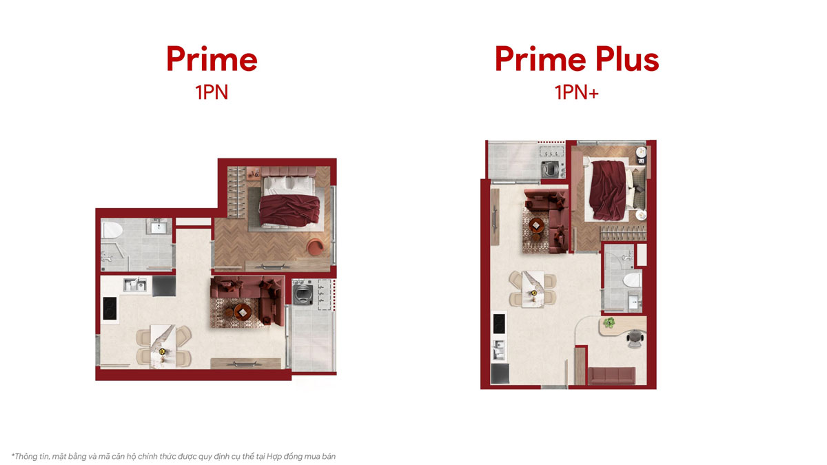 | Căn hộ 1PN & 1PN+ (43-54m2) | Diện tích tối ưu, bố trí thông minh, phù hợp khách hàng trẻ và nhà đầu tư khai thác cho thuê. |