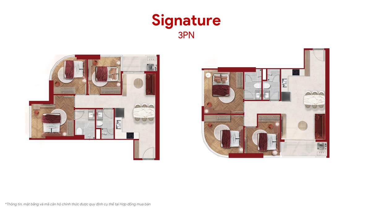 | Căn hộ 3PN (76-87m2) | Sở hữu không gian rộng rãi, thiết kế tối ưu riêng tư, ban công lớn. |