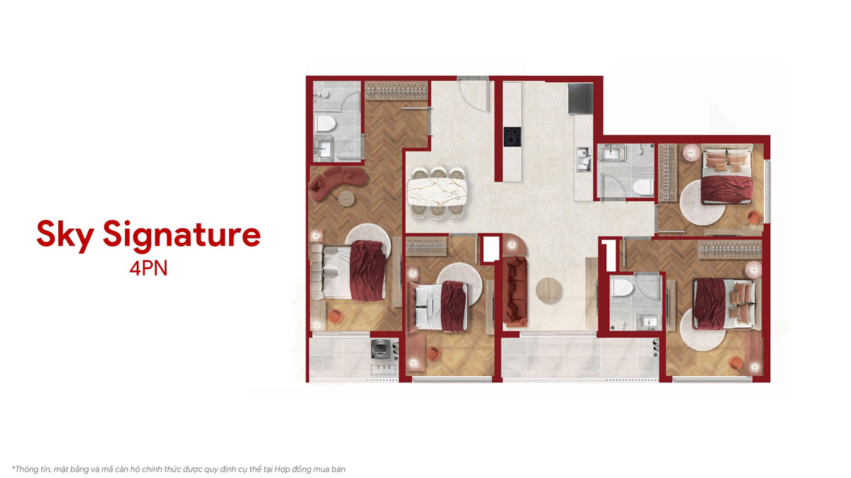 | Căn hộ 4PN | Diện tích lớn, tầm nhìn panorama đắt giá, dành cho khách hàng thượng lưu tìm kiếm không gian sống đẳng cấp. |